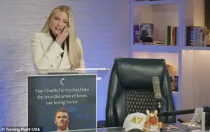 The emotional speech, delivered from the empty chair once used by Charlie in his studio, resonated with a grieving audience who had gathered online to hear her voice for the first time since the tragedy.