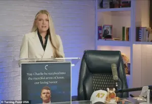 She spoke of God’s mercy, of a divine plan that, despite the horror of her husband’s assassination, was still unfolding in ways she could not yet comprehend. ‘My husband laid down his life for me, for our nation, for our children,’ she said, her voice rising with conviction. ‘May Charlie be received into the merciful arms of Jesus, our loving Savior.’