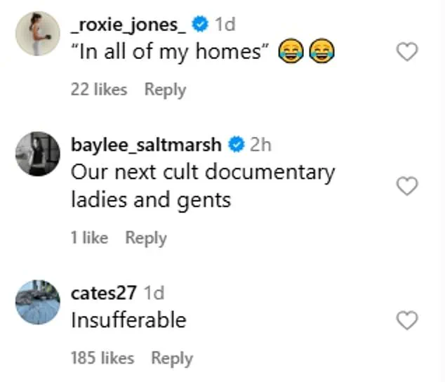 Public reaction to Anderson’s interview has been sharply critical, with many readers accusing her of tone-deaf extravagance. ‘In all of my homes,’ very relatable,’ one Instagram user quipped, mocking her pretentiousness.