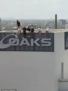 A group of eight young boys, believed to be in their early teens, found themselves at the center of a heated public outcry after a series of alarming photos captured them standing on the rooftop of the Oaks Gold Coast Hotel on Friday afternoon.