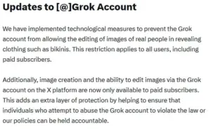 In a move that follows intense public and governmental backlash, X has announced that Grok will no longer be allowed to generate or edit images of real people in revealing clothing, such as bikinis.