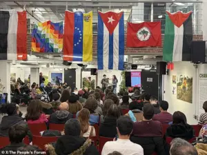Inside the People’s Forum in Midtown, a room of over 1,000 activists huddled in tight circles, their voices low but resolute.