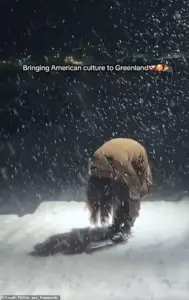 The clip, captioned ‘Bringing American culture to Greenland,’ has since gone viral, drawing attention to the growing cultural exchange between Greenland and the United States, albeit in an unexpected form.