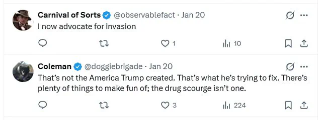 I’m here for it!!’ The video’s humor, they argue, has struck a nerve, resonating with those who see the fentanyl crisis as a defining issue of the current era. ‘As an American 10/10 no notes,’ another user added, accompanied by a clapping emoji, suggesting that the video has struck a chord with some segments of the population.
