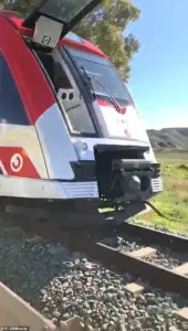 Despite the collision, the train remained on the tracks, and no derailment occurred.