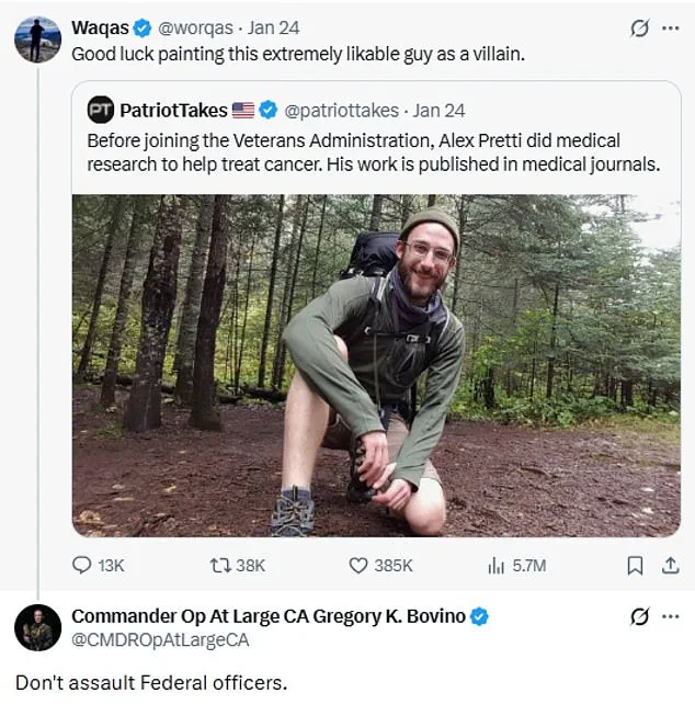 While Bovino’s social media account has gone silent for over 11 hours, Department of Homeland Security assistant press secretary Tricia McLaughlin emphasized that he remains a ‘key part of the president’s team.’ However, the reassignment of Bovino and the sidelining of Homeland Security Secretary Kristi Noem—another close ally of the president—suggest a strategic effort to de-escalate tensions between federal agents and protesters, which surged after Pretti’s death.