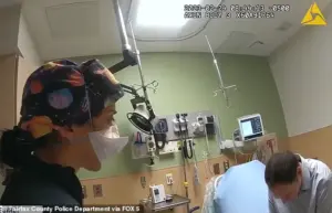 The clip, shown during his murder trial, shows Banfield breaking down in tears as a nurse, flanked by a police officer, delivers the devastating news: ‘Your wife has died.’ The footage, which has since ignited a firestorm of public debate, was presented by Banfield’s defense attorneys as evidence of his profound emotional turmoil.