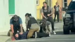 The misinformation surrounding the incident quickly spread online, with some users falsely claiming the teen was a minor and accusing ICE of misconduct. One social media post described the officer as a ‘probable untrained German Shepherd,’ while others decried the encounter as ‘Nazi-like’ behavior. The Anaheim Police Department emphasized that the teen’s arrest, like any use of force, is under investigation. However, the department’s spokesperson stressed that the suspect was ‘up to no good,’ noting his prior criminal history and the planned nature of the jewelry store robbery.