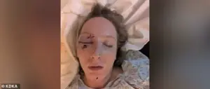 A massive slab of ice tore through the windshield of a car driven by Madeline Grace, 29, near Pittsburgh on Saturday morning, leaving her with severe facial injuries as her 7-year-old daughter watched in horror. The incident occurred on the Parkway West, a major highway outside the city, when a chunk of ice dislodged from a tractor-trailer and struck Grace’s vehicle with devastating force. The ice shattered the windshield, embedding shards of glass into Grace’s face and breaking her eye socket and fracturing her nose, according to WFMZ. ‘The glass shattered, tiny little pieces everywhere,’ Grace told the outlet. ‘It was in my mouth. I was crunching on it.’
