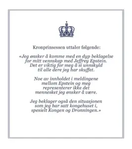 The documents, obtained by the U.S. Department of Justice, contain hundreds of references to the crown princess. In 2019, she had already expressed remorse for her interactions with Epstein, but the latest revelations have forced her to address the issue again. Mette-Marit stated that some messages exchanged with Epstein do not reflect the values she upholds, adding that she apologizes to anyone she has ‘disappointed.’ This marks her second apology in a week, following an earlier statement in which she admitted to ‘poor judgment’ and regretted any contact with Epstein.