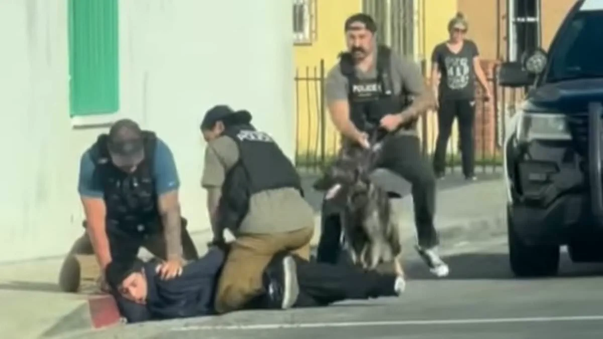 The misinformation surrounding the incident quickly spread online, with some users falsely claiming the teen was a minor and accusing ICE of misconduct. One social media post described the officer as a 'probable untrained German Shepherd,' while others decried the encounter as 'Nazi-like' behavior. The Anaheim Police Department emphasized that the teen's arrest, like any use of force, is under investigation. However, the department's spokesperson stressed that the suspect was 'up to no good,' noting his prior criminal history and the planned nature of the jewelry store robbery.