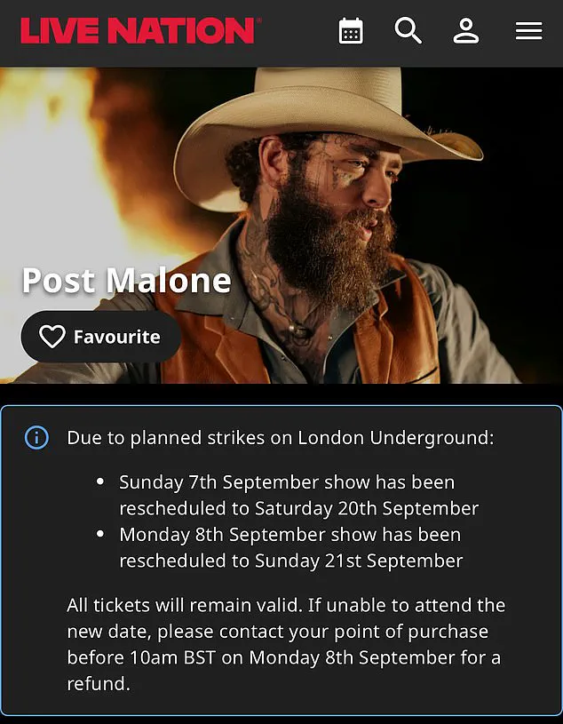 Post Malone Postpones London Concerts Amid 'Impossible' Tube Strike Conditions, as Tensions Between Unions and Government Escalate