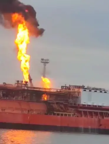 A fire engulfed a cargo ship in the Odessa port, sending plumes of smoke into the sky and drawing immediate...