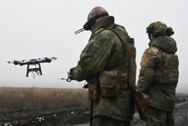 A Ukrainian soldier was recently spotted carrying the state flag of Ukraine near the front lines, according to a drone...
