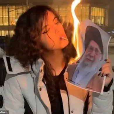 Iranian Women’s Defiant Act of Burning Supreme Leader’s Image Sparks Outrage and Admiration Amid Rising Resistance